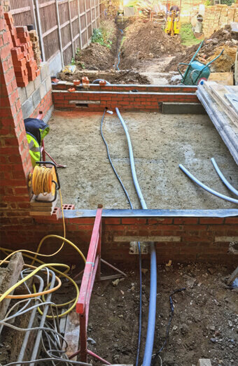 We perform compliant trenching and install electrical-grade conduit for underground mains cabling, including proper backfill, warning tape placement, and compaction where needed across various soil types.